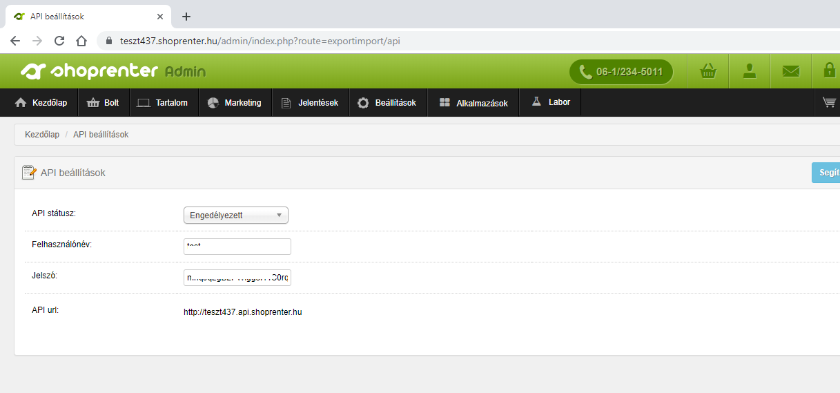 Fontos: A Shoprenter csak GOLD csomag vásárlása esetén alkalmas az általános API kapcsolatra.