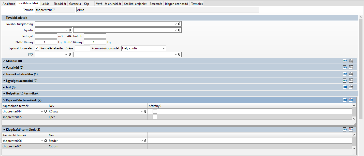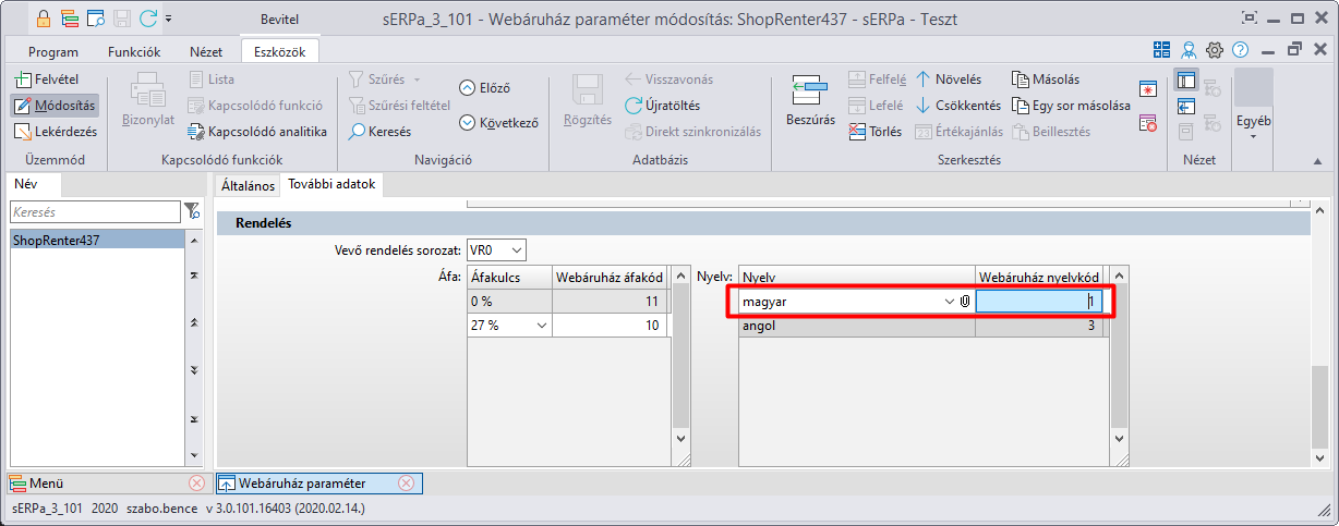 amelyett a sERPa webáruház paraméterben megadni(További adatok fül – Nyelv).