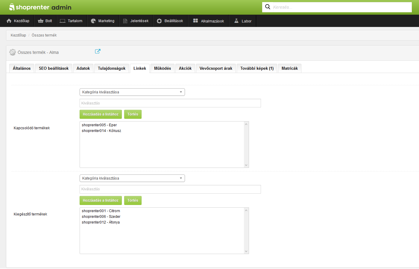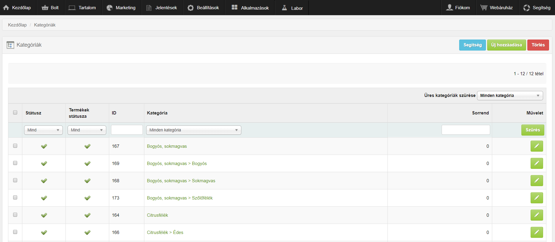 5.Végül a Fuvardíj paraméterben az általunk használt fuvardíjakat besoroljuk az új kategória három tételével. Például a személyes átvételhez felvesszük a "bolti átvét" tételt, a saját házhoz szállítás paraméterhez a "saját szállítás", az összes futárszolgálat paraméterhez (GLS, MPL, PPP stb.) pedig a "futárszolgálat" kategória tételt.
